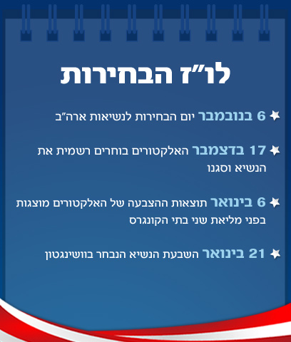 סקר של סוכנות הידיעות רויטרס וחברת איפסוס שהתפרסם אמש מצביע על מרוץ הדוק מאוד גם בשאר המדינות המתנדנדות: בקולורדו, שבה תשעה אלקטורים, אובמה ורומני בתיקו 48 אחוזים, בווירג’יניה, שבה 13 אלקטורים, אובמה נהנה מ-47 אחוזי תמיכה, לעומת 46 אחוזים לרומני, ואילו באוהיו, שנחשבת ל”מדינת הפרס” עם 18 אלקטורים, נהנה אובמה מיתרון של ארבעה אחוזים – 48 לעומת 44. רומני ממשיך הלילה לפנסילבניה ואובמה לאוהיו. |