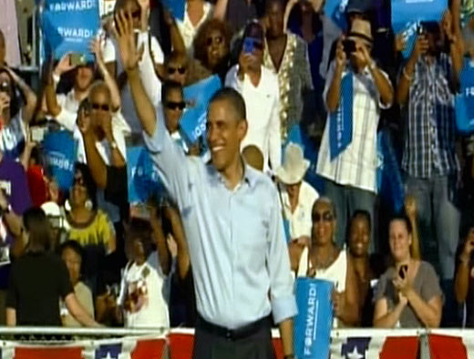 „לא משנה מי אתם ומאיפה הגעתם, לא משנה איך התחלתם ומה שם המשפחה שלכם, אם תעבדו קשה תוכלו להצליח כאן באמריקה. בשביל זה אנחנו נלחמים, בגלל זה אני מבקש את קולכם”, אמר אובמה בעצרת הבחירות בפלורידה. „תעבדו איתי, תדפקו על דלתות בשבילי, תרימו טלפונים למעני. צאו להצביע למעני. אנחנו הולכים לנצח, פלורידה. אנחנו נאשר מחדש את הקשרים שמאחדים את האומה הזו, את הרוח שהופכת את ארה”ב למדינה הדגולה ביותר בעולם”.