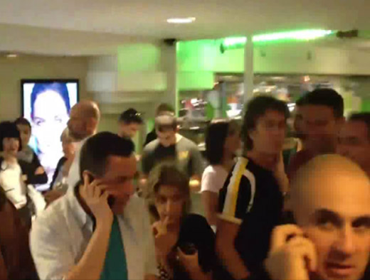 ![]() תופסים מחסה במדרגות בניין בתל-אביב, היום בצהריים