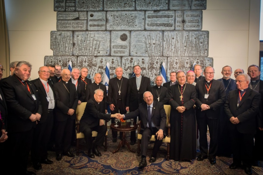 Amikor vandalizmus ütötte fel a fejét a szent helyeken, mi együtt álltunk ki a keresztény közösséggel, hogy elítéljük ezeket a szörnyű cselekedeteket. Ezt az együttes kiállást a jövőben is fenntartjuk – mondta az elnök a harminchárom európai püspöknek, utalva a júniusi, Galileában történt templomgyújtogatásra, amellyel kapcsolatban a rendőrség azt feltételezi, hogy jobboldali izraeli szélsőségesek követték el.