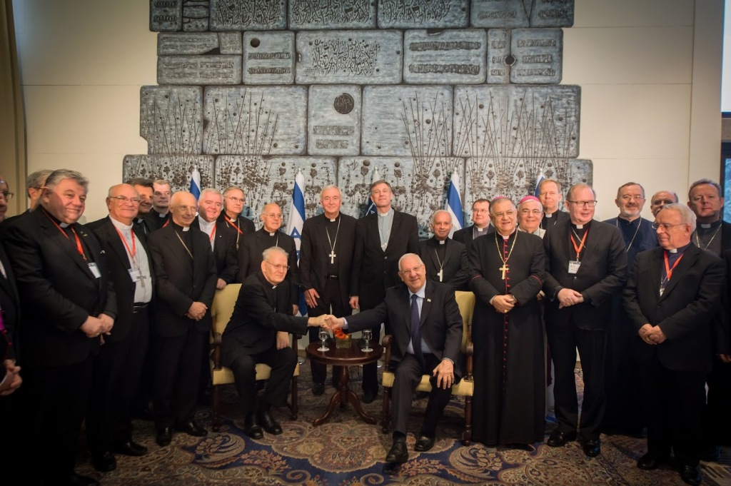 Reuvén Rivlin, Izrael elnöke szeptember 16-án Jeruzsálemben fogadta az Európai Püspöki Konferenciák Tanácsa (CCEE) tagjait. A testület, melynek elnöke Erdő Péter bíboros, első alkalommal tartotta közgyűlését a Szentföldön szeptember 11. és 16. között. A The Times Of Israel cikkét adjuk közre.
