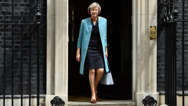 British Home Secretary Theresa May walks out of 10 Downing Street in central London after a cabinet meeting on June 27, 2016. May became the sole contender to become Britain