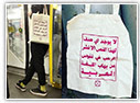 | Die Tasche wurde in Berlin in der U-Bahn aufgenommen. Da steht auf Arabisch: „Der Text hat allein die Absicht, in den Herzen jener Panik zu verbreiten, die Angst vor der arabischen Sprache haben.” Die Jutebeutel wurden in Haifa von Rock Paper Scissors erfunden und fanden augenblicklich ein weltweites Echo. Der Beutel zeige, wie absurd Islamophobie und Fremdenfeindlichkeit sei. Die Hersteller sind die Sana Jammalieh und Haitham Charles Haddad aus der nordisraelischen Stadt Haifa. Sie haben am Shenkar College of Engineering, Design and Art in Tel Aviv studiert. (Twitter, buzzfeed, BZ, telegraph, attn, sbs, huffington) TS |
