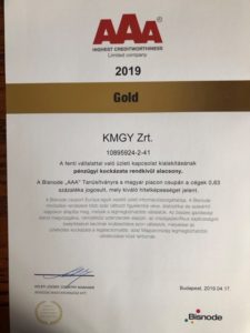 Az ügyfeleket illetően még azt is fontosnak tartotta megjegyezni a cégvezető-tulajdonos, hogy az eddigi munkájuk elismerésének tartja azt a tanúsítványt is, amely szerint a KMGY Zrt-vel történő üzleti kapcsolat kialakításának a pénzügyi kockázata rendkívül alacsony. Ilyen minősítésre a hazai cégek csupán 0.63 százaléka jogosult.