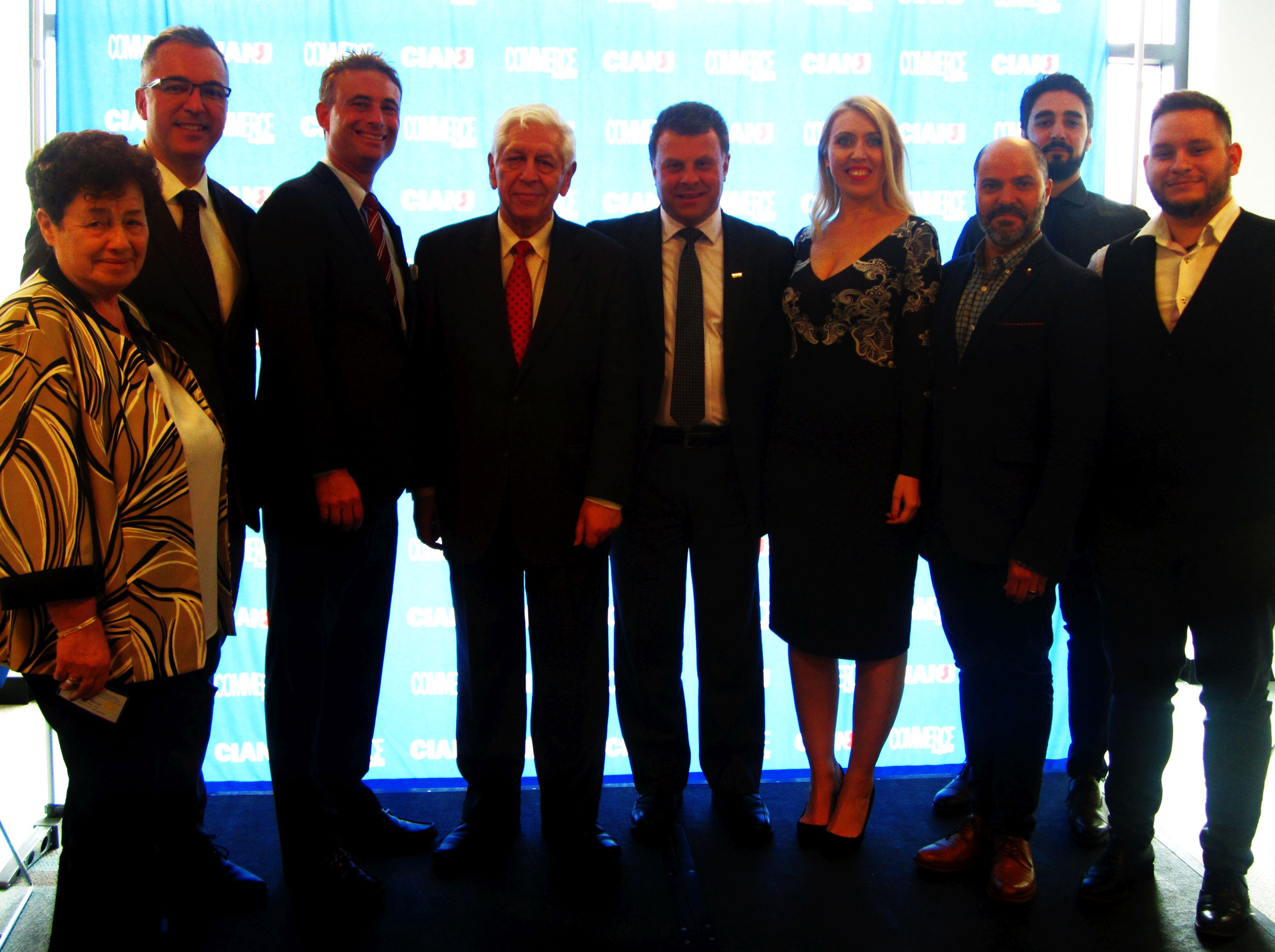 Az Amerikai Magyar Kereskedelmi Kamara néhány tagja az esemény főszervezőivel a konferencia szünetében. (Balról jobbra: Barát Éva az AmHunCham NY Tanácsadó Testületének tagja, Dr. Zsarnóczky Martin, az AmHunCham NY oktatásért és továbbképzésért felelős vezetője, Dr. David Weiss, a NJCU igazgatója, Barát Tamás az AmHunCham NY alapító elnöke, Anthony Russo a CIANJ elnöke, Békési Brigitta az AmHunCham NY Budapesti Központjának vezetője, Révész András az AmHunCham NY Kincstárnoka, Németh Ákos Lehel, a magyar delegáció egyik tagja, egy budapesti cég képviselője, Kerekes Tamás, az AmHunCham NY oktatási ügyeiért felelős munkatársa.)