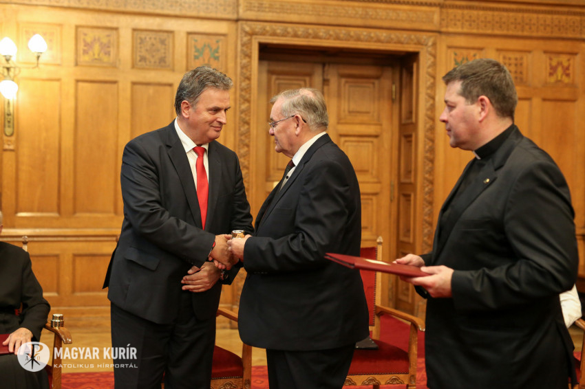 A Mindszenty József bíboros, hercegprímásról elnevezett elismeréseket Lezsák Sándor, az Országgyűlés alelnöke, a Mindszenty Társaság ügyvezető elnöke adta át a díjazottaknak.