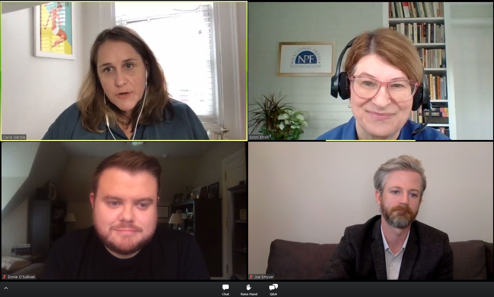 Ezért az amerikai National Press Foundation (amerikai Nemzeti Sajtóalapítvány), az Association of Foreign Press Correspondents in the United States (Amerikai Külföldi Sajtótudósítók Szövetsége) közreműködésével egy online vitát szervezett arról, hogy az újságírók miként használhatják az új digitális eszközöket annak nyomon követésére, hogy a közönség hogyan “fogyasztja” a közegészségügyi információkat, különös tekintettel a COVID-19 vírusjárvány témájára. A vitában kiemelt szerepet kapott a téves információk szerepe, és az is, hogyan terjed a félreinformálás a médiában.