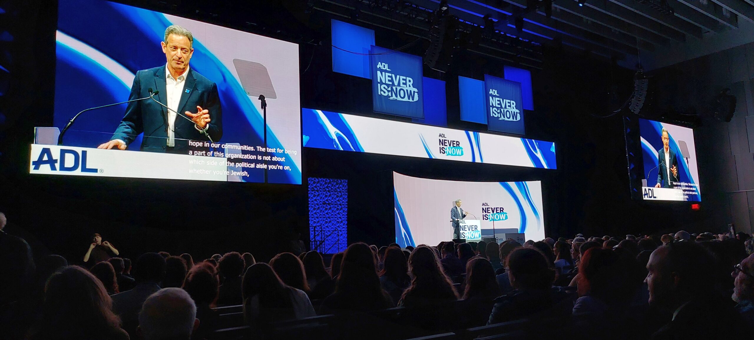Jonathan Greenblatt, az ADL vezérigazgatója, az esemény nyitóbeszédében megindokolta a konferencia címét, amikor kiemelte, hogy “Október 8-án a holokauszt óta a legrosszabb antiszemita mészárlás elkövetőit hősként ünneplik, nemcsak Ramallahban vagy Bejrútban, hanem Londonban és New Yorkban, olyan helyeken is, mint a Harvard és a Columbia egyetemek.” Jonathat Greenblatt hangsúlyozta, hogy az antiszemitizmus példátlan hulláma vonul végig az egész bolygón. A vezérigazgató kiemelte, hogy ha valaha is volt egy pillanat arra, hogy a „Soha többé” riasztás elhnagozzék, akkor most ennek itt az ideje. Beszédének fontos üzenete az volt, hogy léteznek olyan emberek, akik el akarják hitetni, hogy az anticionizmus nem egyenlő az antiszemitizmussal. Ezek az emberek határozottan ellenzik a világ egyetlen zsidó államának létezését