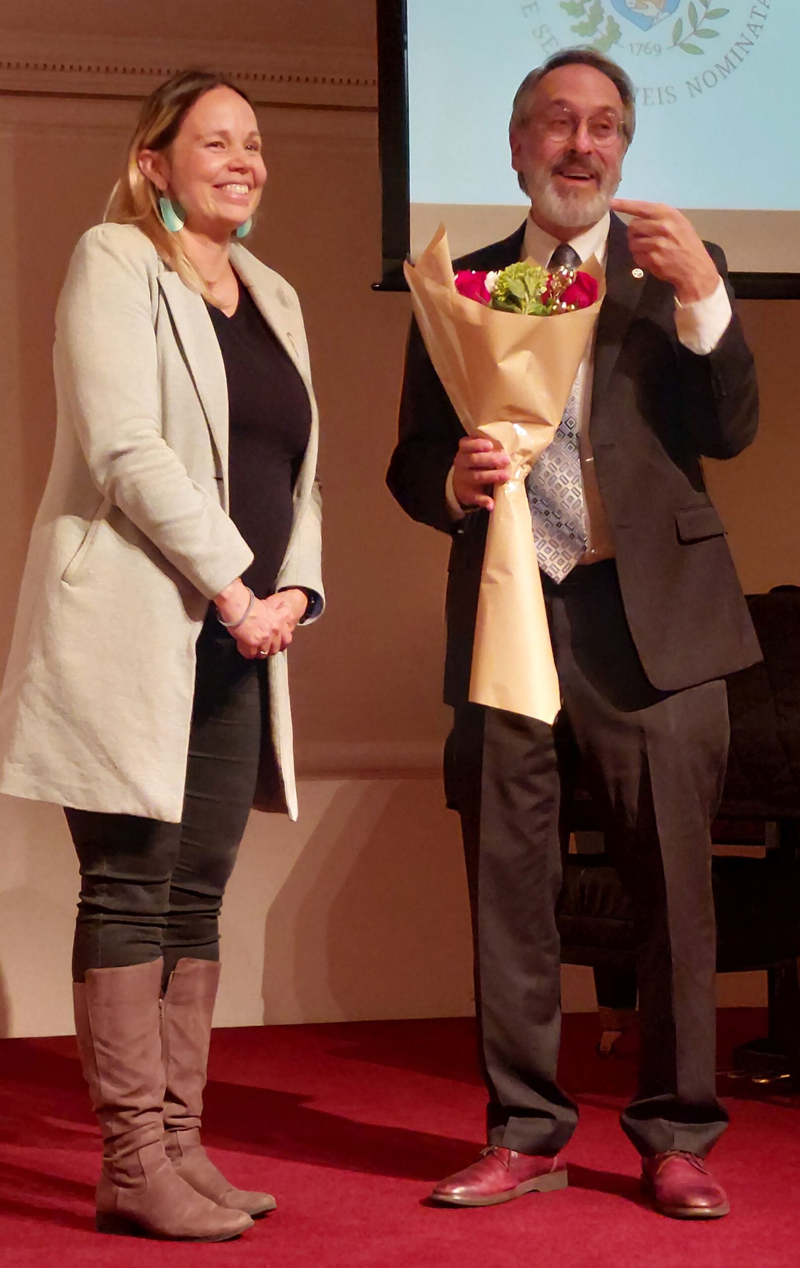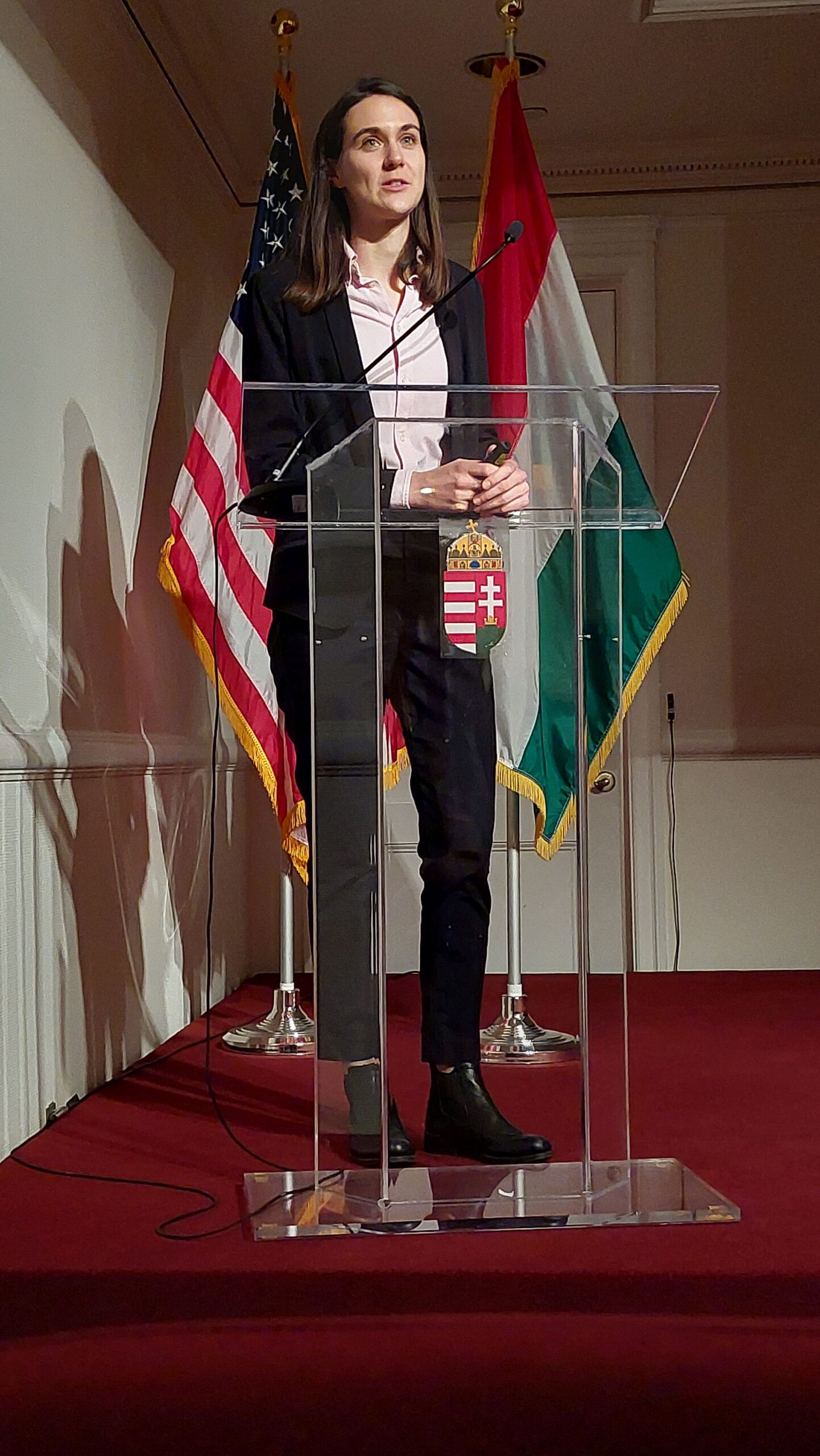 Dr. Nagy-Szakál Dorottya elnöktől, aki hét esztendeig volt a szervezet vezetője és bemutatták Charles J. Vörösmarty professzort, aki az Advanced Science Research Center igazgatója New York-i Egyetemen, illetve köszöntötték a Társaság új titkárát, Dr. Nagy Gabriellát, aki a Főkonzulátus TéT attaséija.